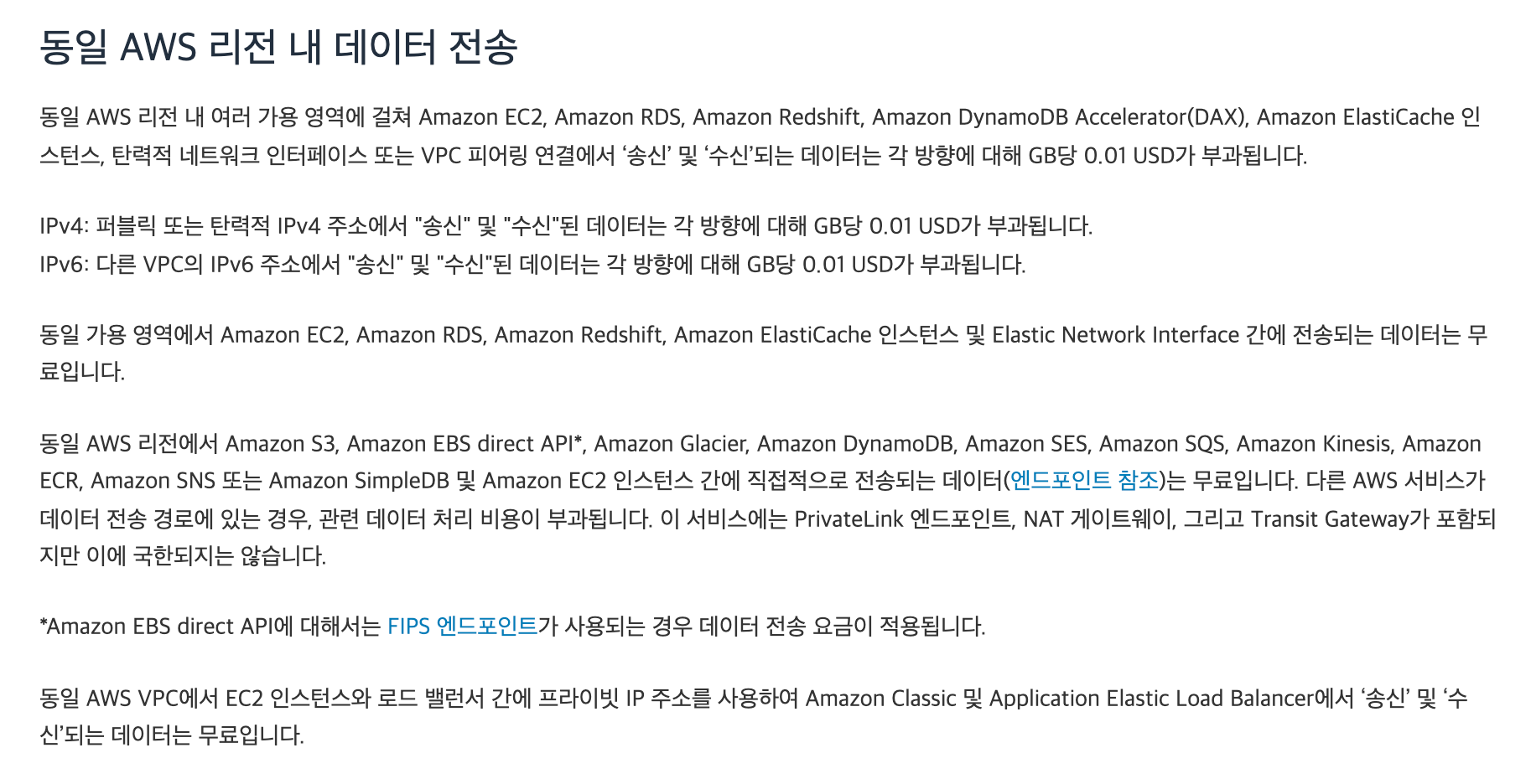 - 동일 가용 영역에서 송수신되는 데이터는 무료입니다.
