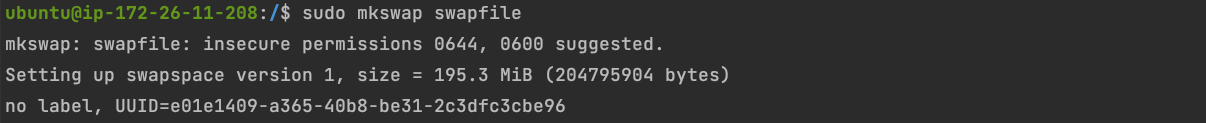 sudo mkswap swapfile